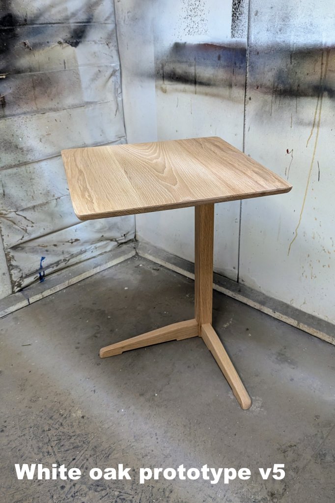 The form has evolved to meet three simple requirements. It needed to be lightweight, sturdy and portable. I insisted on a cantilevered top to offer a large work space and efficient base that fits under and around chair legs.