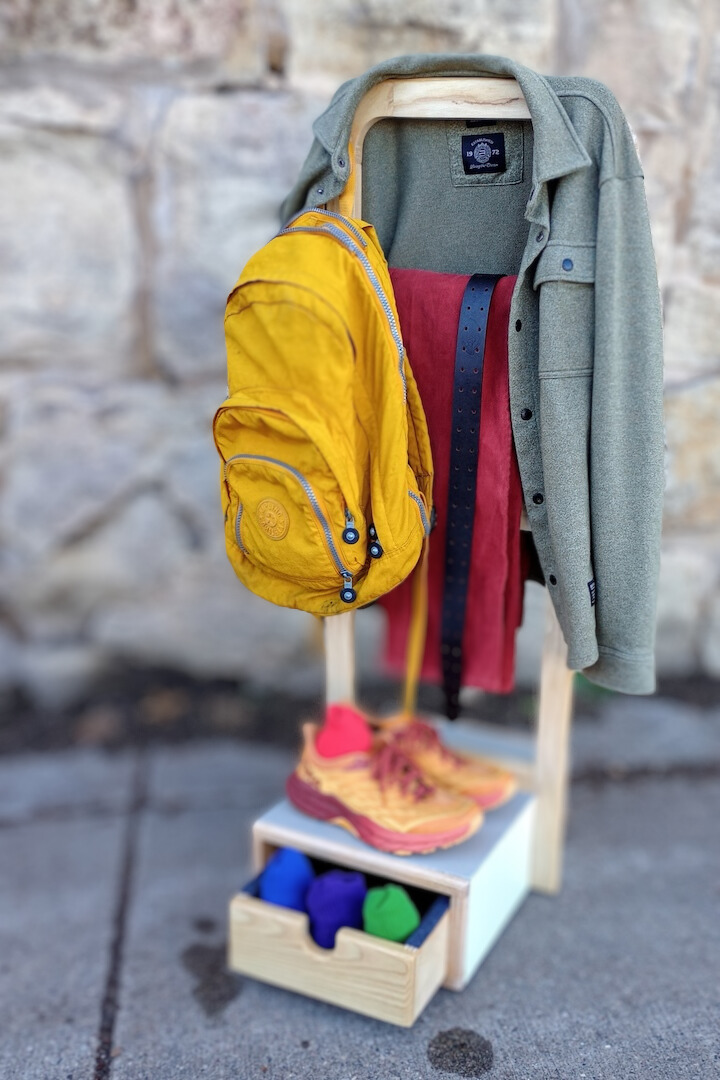 My valet stand is a smart and minimalist way to organize outfits for the next day. Crafted with modern adults in mind, the valet stand keeps your everyday essentials accessible, clean and wrinkle-free.