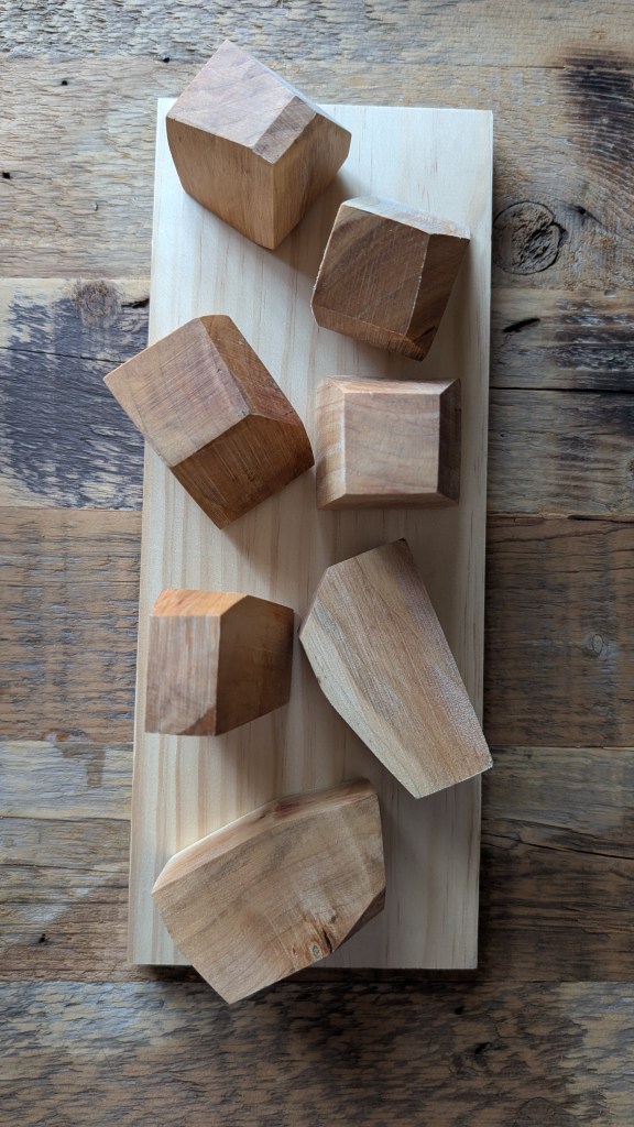 Set of 7 handcrafted hardwood rocks available now to order.